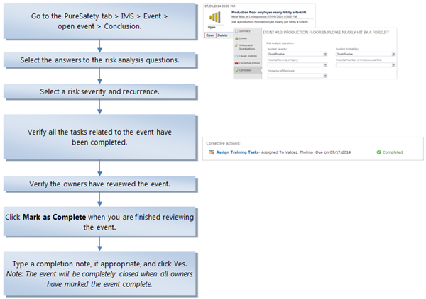This tasks presumes that you are ready to conclude and resolve the event. From the event record, go to the Conclusion screen. Follow the steps on this page.