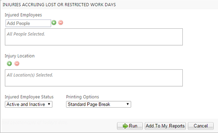 This report provides a list of injuries with lost or restricted work days through the current date.