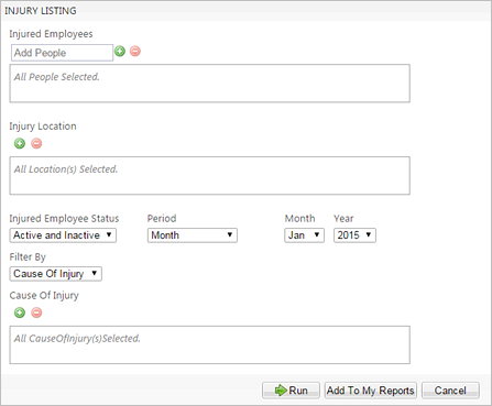 This report provides a complete list of all injuries that occurred within a selected date range. This report allows you to manage and track all of your injuries by employee, job function, or location.