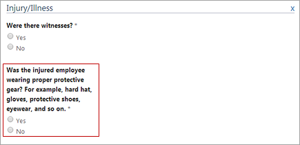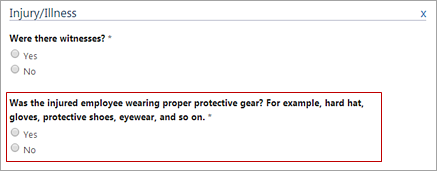 Provides a set of yes-no radio buttons. The labels Yes and No are not editable. Users can select a single answer. |