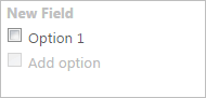 Six types of fields can be added as custom fields. Selecting New Field displays a drop down menu from which you can select the type of field you want.