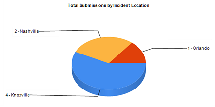 This report shows the number of submissions per location or classification. Run this report to see how many first aid incident reports your company has had this month compared to last month, for example. The report groups submissions by either classification or incident location, based on your selections. Anonymous submissions are included in the submission count.