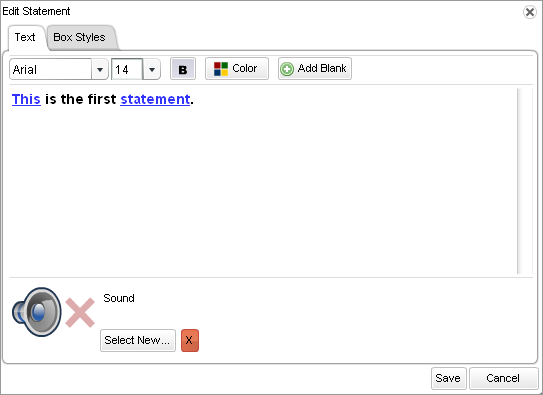 In fill-in-the-blank learning activities, statement boxes with blanks