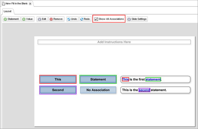 you can establish associations between the statement blanks and answer values.