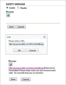 Health and safety message setup